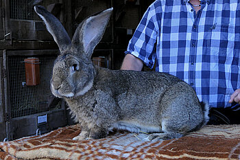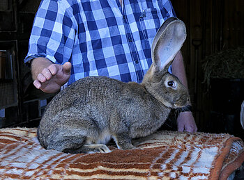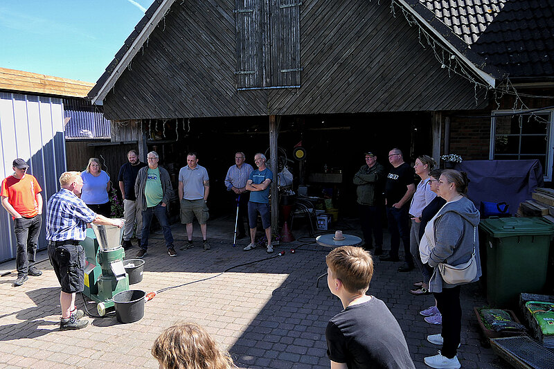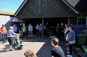 Nachdem einige Tiere vorgestellt wurden, präsentierte Mario seine Eigenkonstruktion zur Herstellung von Pressfutter. Ab 12.00 Uhr wurde Kaninchenbratwurst spendiert und vorbestelltes Fleisch fand ebenfalls seinen Weg auf den Grill.