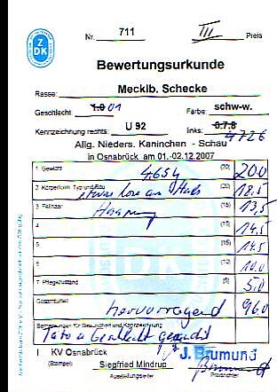 Normalgewicht über 4,50 kg. Mindestgewicht 3,50 kg. Höchstgewicht 5,50 kg.